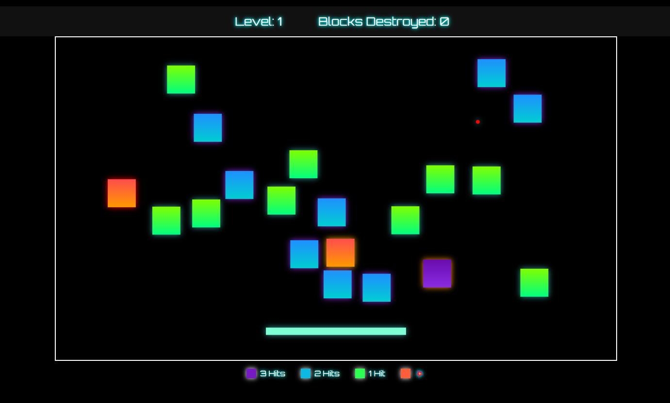 A space-themed block breaker game built with TypeScript, HTML5 Canvas, and SCSS. This game features animated explosions, multiple block types, levels, and retro-futuristic visuals.